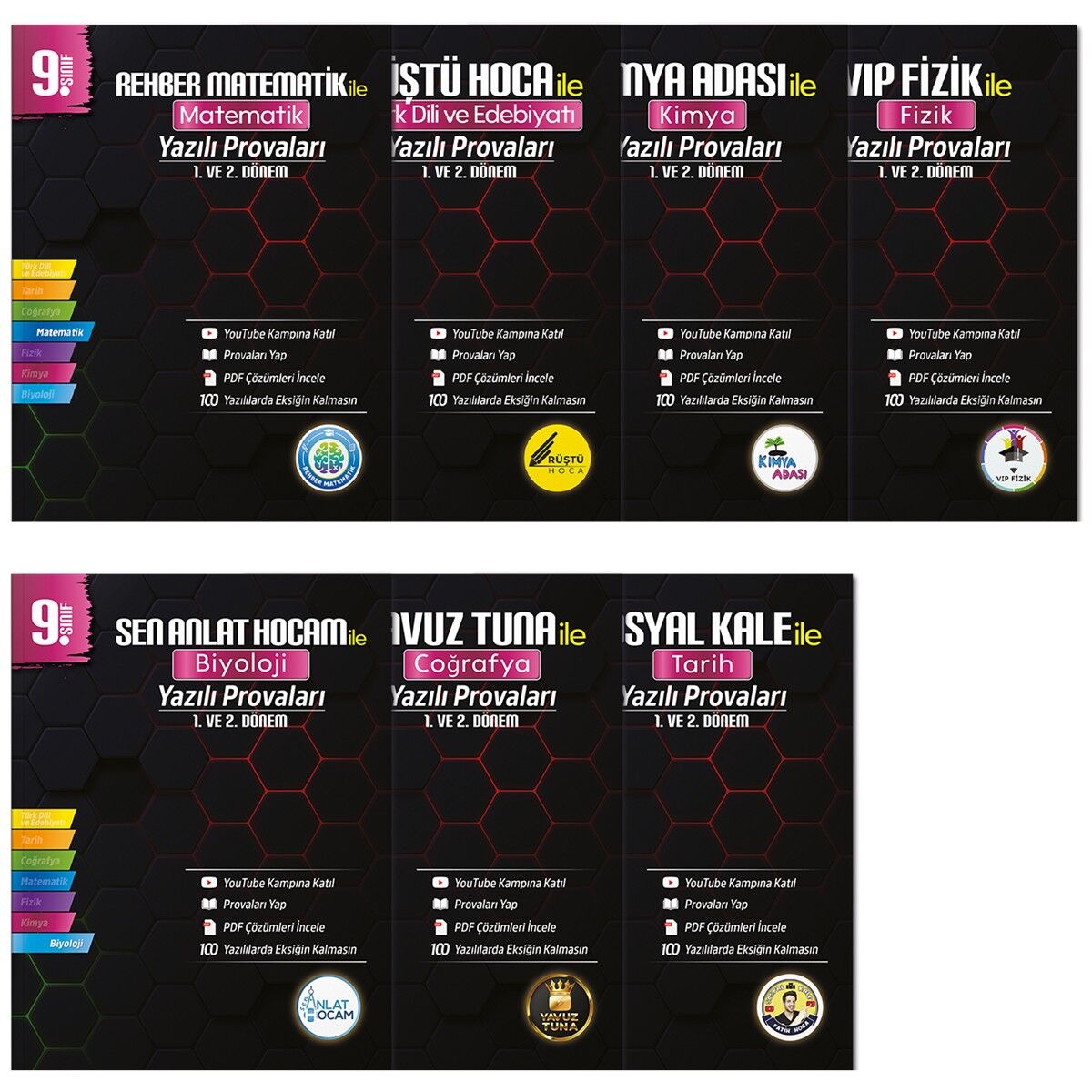 Setimiz 7 kitaptan oluşuyor ve her bir kitabımızın içeriğinde 1. Ve 2.Dönemikapsayacak şekilde 4 yazılı için 3’er provadan toplamda 12 yazılı provası yer alıyor. Bu provalarMEB’in yayımladığı yazılı senaryoları ve örnek sorular baz alınarak hazırlanmıştır.