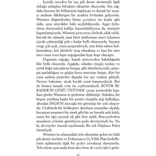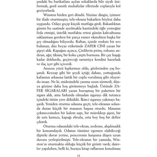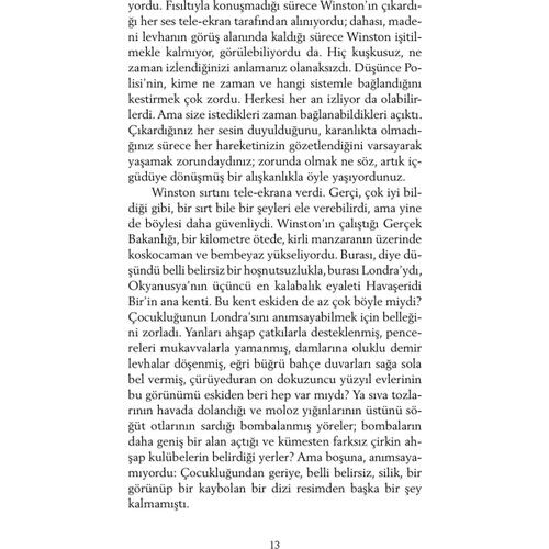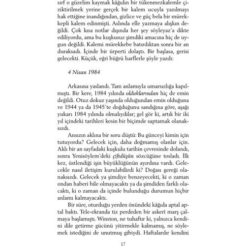 George Orwell’in kült kitabı Bin Dokuz Yüz Seksen Dört, yazarın geleceğe ilişkin bir kâbus senaryosudur. Bireyselliğin yok edildiği, zihnin kontrol altına alındığı, insanların makineleşmiş kitlelere dönüştürüldüğü totaliter bir dünya düzeni, romanda inanılmaz bir hayal gücüyle, en ince ayrıntısına kadar kurgulanmıştır. Geçmişte ve günümüzde dünya sahnesinde tezgâhlanan oyunlar düşünüldüğünde, ütopik olduğu kadar gerçekçi bir romandır Bin Dokuz Yüz Seksen Dört. Güncelliğini hiçbir zaman yitirmeyen bir başyapıttır; yalnızca yarına değil, bugüne de ilişkin bir uyarı çığlığıdır.