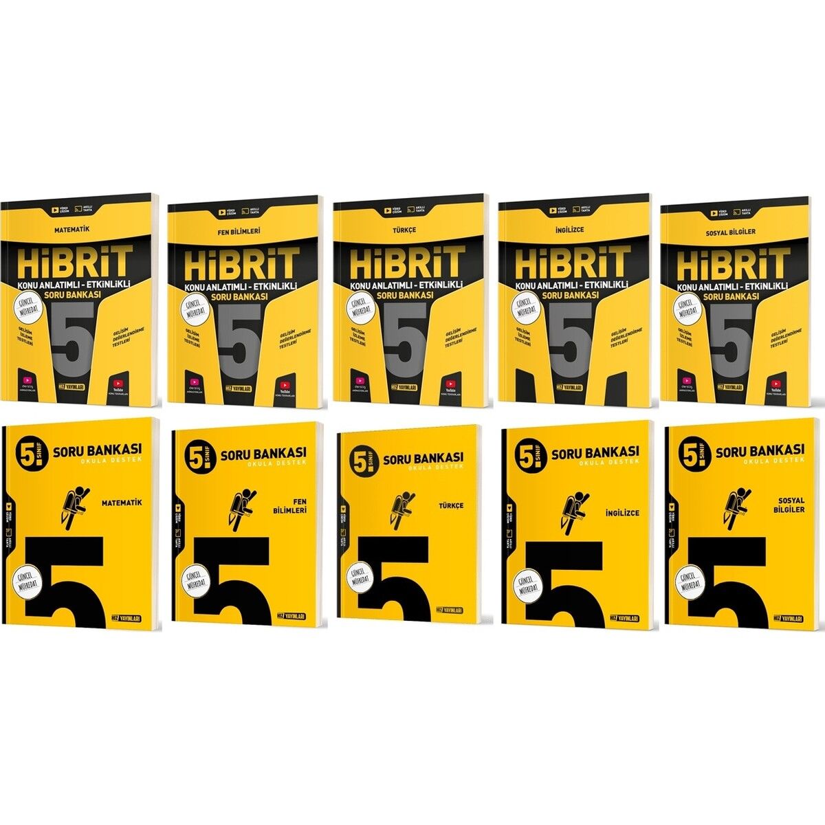 2025 5. Sınıf Matematik Türkçe Fen Sosyal Ingilizce Soru + Hibrit - Konu Seti 10 Kitap