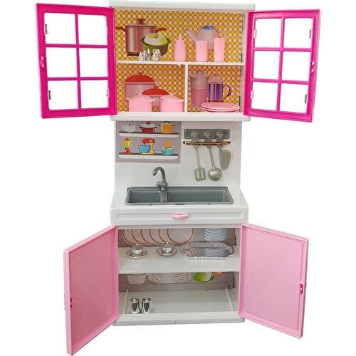 Beyaz ve pembenin harika uyumuyla oluşan kaliteli plastikten üretilmiş aksesuarlı oyun seti