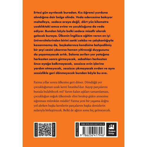Ertesi gün ayrılacak buradan. Kız öğrenci yurduna alındığına dair belge elinde. Veda edercesine bakıyor mahalleye, sadece oraya değil, dört yüz kilometre uzaklıktaki amca evine ve çocukluğuna da veda ediyor. Bundan böyle belki sadece misafir olarak gelecek buraya. Ülkenin İngilizce eğitim veren en iyi üniversitelerinden birini sanki zekâsı ve çalışkanlığıyla kazanmamış da, başkalarınca kendisine bahşedilmiş bir şeyi sesini çıkarırsa hemen yitireceği duygusunu da yaşamayacak artık. Salona serilen yer yatağına herkesten sonra girmeyecek, sabahları herkesten önce ayağa kalkmayacak, sessizce evin işlerine yardım etmeyecek, sessizce çıkmayacak evden ve aynı sessizlikle geri dönmeyecek bundan böyle bu eve. Fatma yıllar sonra ülkesine geri döner. Döndüğü yer çocukluğunun uzak kenti İstanbul’dur. Kayıp parçalarını burada bulabilecek mi? Yarım kalan aşkları tamamlaması, çocukluğun soğuk ülkesinde elini bırakıp giden annesine sığınması mümkün müdür? Fatma yeni bir yaşama doğru yol alırken başka kentlerin parçalarını başka denizlerin sularıyla birleştirecek. Belki de ağıtın sonu hiç gelmeyecek.