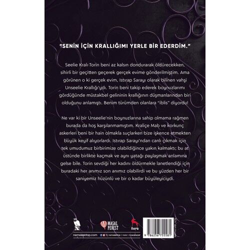 “Senin İçin Krallığımı Yerle Bir Ederdim.” Seelie Kralı Torin Beni Az Kalsın Dondurarak Öldürecekken, Sihirli Bir Geçien Geçerek Gerçek Evime Gönderilmiştim. Ama Görünen O Ki Gerçek Evim, Istırap Sarayı Olarak Bilinen Vahşi Unseelie Krallığı’ydı. Torin Beni Takip Ederek Boynuzlarımı Gördüğünde Müstakbel Gelininin Krallığının Düşmanlarından Biri Olduğunu Anlamıştı. Benim Türümden Olanlara “İblis” Diyordu! Ne Var Ki Bir Unseelie’nin Boynuzlarına Sahip Olmama Rağmen Burada Da Hoş Karşılanmamıştım. Kraliçe Mab Ve Korkunç Askerleri Beni Bir Hain Olmakla Suçlarken Bize İşkence Etmekten Büyük Keyif Alıyorlardı. Istırap Sarayı’ndan Canlı Çıkmak İçin Tek Umudumuz Birbirimize Olabildiğince Yakın Kalmaktı; Bu At Üstünde Birlikte Kaçmak Ve Aynı Yatağı Paylaşmak Anlamına Gelse Bile. Torin Sevdiği Her Kadını Öldürmekle Lanetlendiği İçin Buradaki Her Anımız Son Anımız Olabilirdi Ve Bu Yüzden Her Bir Saniyemiz Hüzünlü Ve Bir O Kadar Büyüleyiciydi.