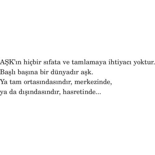 Ya ortasındasındır AŞK’ın merkezinde; ya da dışındasındır, hasretinde..