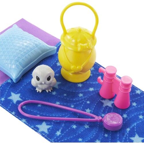 Kutu İçeriği: Bahçıvan tulumu ve ayakkabı giyen Chelsea Bebek (15 cm), 1 adet baykuş figürü, 1 adet uyku tulumu, 1 adet yastık, 1 adet pusula, 1 adet dürbün ve 1 adet fener içerir..