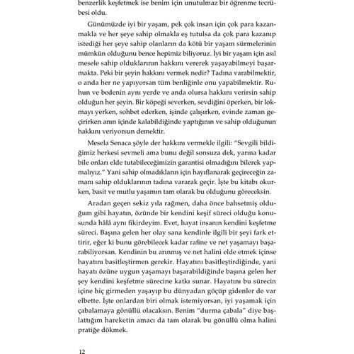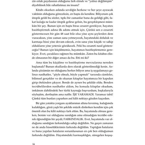“Yaptığımız çoğu zaman, bütün zarafeti ve letafetiyle karşımızda duran kar beyaz güvercinin boynuna, sırf daha güzel dursun diye boncuk asmak. Selen’in derdi o boncukla aslında. Diyor ki zaten güzel, yeterli; ne gerek var boncuğa? Sade bir yaşam öneriyor Selen; sade, basit, mutlu ve kendi güzelliğinde bir yaşam. Ben de soruyorum sık sık kendime. Sahi, gerek var mı rengârenk tavus kuşunun alnını kınalamaya?” Şermin Yaşar Dünya bize yer açsın isteriz, oysa dünyaya yer açması gereken bizizdir. Etrafımızdaki eşya kalabalığından, tıka basa dolu dolaplardan, ağırlığı taşıyamayan raflardan, yalnızca bir adımlık yer kalmış odalardan ve zihinsel yüklerimizin kalabalığından dünya sızamaz içeriye. Hayatın adımları eşikte kalır. Onu buyur edip alsanız içeriye, sadeliğin ortasında söyleşseniz hayatla, kendi sesinizi de duyacaksınız. Nasıl mı? Selen Baranoğlu, bugüne kadar binlerce okura ulaşan Basit ve Mutlu Yaşam’da bunun yöntemini anlatıyor. Haydi hayatı ve mutluluğu alın içeriye, eksildikçe çoğalacaksınız.