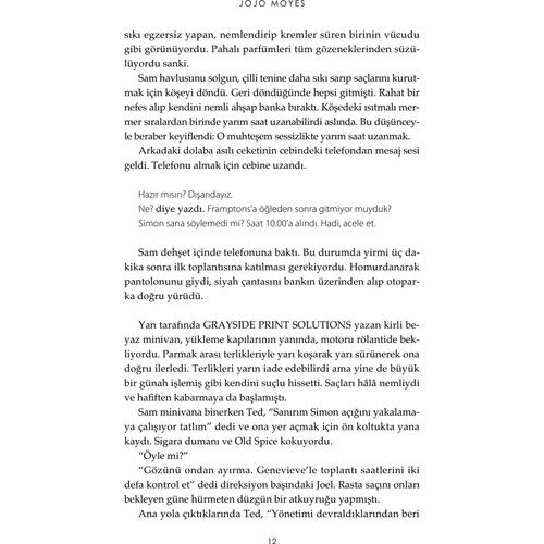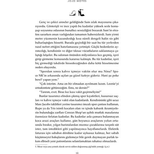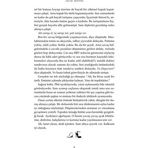 Jojo Moyes her romanında kadın ruhunu, zekâsını, ihtiyaçlarını daha derinden ele almayı başarıyor ve bunu öyle şefkatli bir mizahla yapıyor ki, kitabı bitince göğsünüze sıkı sıkı bastırmak istiyorsunuz.