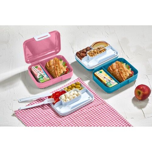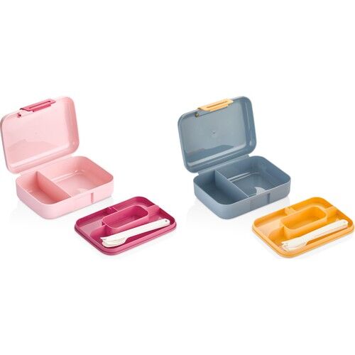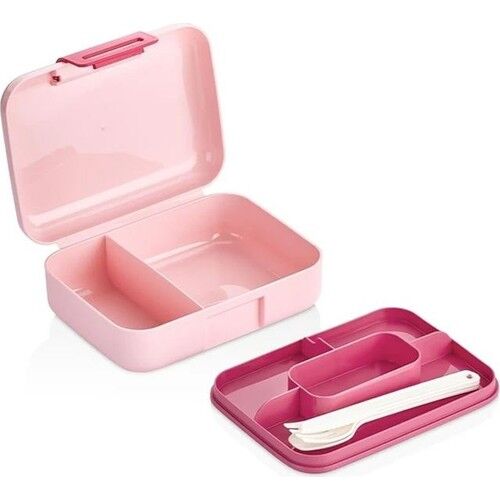 Beslenme Kutusu Çift Katlı Alt Hazne İki Bölmeli Yemek Saklama Kabı Çatal Kaşık Bıçak Set Pembe