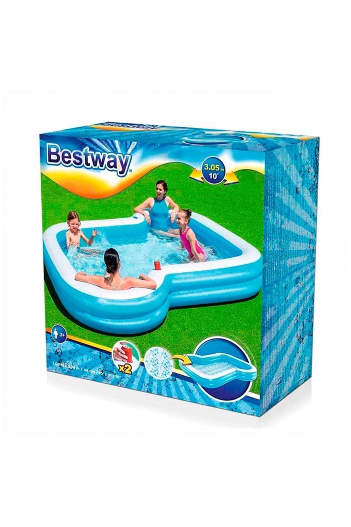 305x274x46cm İki adet bardak tutucu Gerçeğe uygun mozaik baskılı zemin Su kapasitesi: 1207 L (319 gal.) İçerik: Bir havuz, ağır onarım yaması