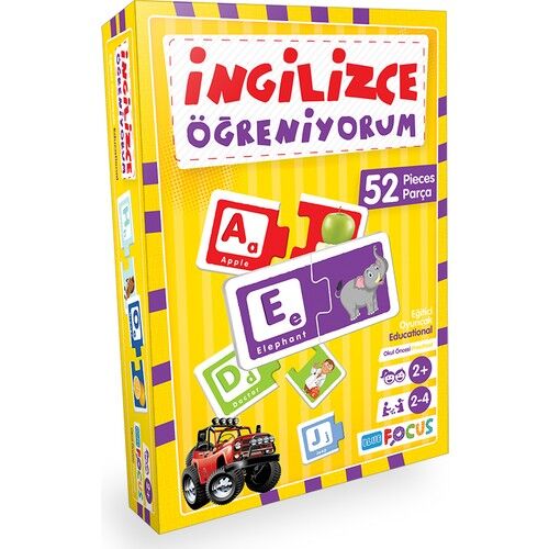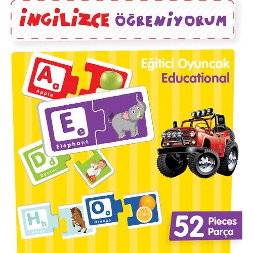 İngilizce Öğreniyorum oyununda 26 adet harf kartı ve bu harflere karşılık gelecek kelimelerin baş harflerinden oluşan 26 adet resimli kart, toplamda kutumuzda 52 adet oyun kartı vardır. İlk önce bütün kartların eşlerini bularak birleştirelim. Daha sonra ingilizce kelimeler çocuğunuza tekrar ettirilip akılda kalması sağlanır. Bütün oyun kartları karıştırılır ve çocuğunuzdan her ingilizce kelime kartından resimdeki ingilizce kelimenin sesi ile başlayan kartı bulmasını ve bu kartları birleştirmesi istenir.İngilizce Öğreniyorum oyun kartlarıyla çocukların ingilizceyi kelimelerle ses karşılığı harflerin birbirleriyle arasındaki ilişkiyi anlayarak çok kolay ingilizce alfabeyi öğrenmelerinde faydalı olacaktır. Parça Sayısı : 52Üretim Yeri : TürkiyeKayıp Parça Desteği : Yok