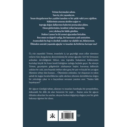 “Tristan koymuşlar adımı. Tam üç yüz yaşındayım. İnsan duygularının her çeşidini tanıdım ve bir şafak vakti yere yığıldım. Köklerimin arasına süzülen ışığın ve toprağa değen dallarımın haberini postacıdan aldım. Onun gözlerinden, kendimi yolun karşısında, yere yıkılmış bir hâlde gördüm. Doktor Lannes’in iki armut ağacından biriydim. Ben onun en değerli varlığı, bir hatıranın canlı anıtıydım. Aramızdaki bu bağ ve dostluk yeniden var olabilir mi, bilmiyorum. Ölümden sonraki yaşamda ağaçlar ve insanlar da birbirine kavuşur mu?” Üç yüz yaşındaki Tristan, insanlarla iç içe geçirdiği uzun yıllar süresince onların tüm duygularını deneyimlemiş bir armut ağacıdır. Sert bir fırtınanın ardından devrildiğinde bilinci, onu toprakla buluşturan köklerinden kurtulup küçük bir kızın kendi kütüğüne oyduğu heykele geçer. Bu süreçte Tristan, geçmişinin gölgeleriyle yüzleşmeye başlar; kurumuş dallarıyla yakılan bir cadı, yanı başında intihar eden genç bir şair ve küçük bir çocuğun ölümüne sebep olan kurşun... Ölümünün ardından, var oluşunun en yakın şahidi iki âşığın beraberliklerine eşlik ederken zihninin derinliklerine doğru bir yolculuğa çıkar ve o kaçınılmaz sorunun yanıtını arar: “Neden hâlâ hayattayım?” Bir Ağacın Günlüğü tabiatı, dünyayı ve insanları bambaşka bir perspektiften, dokunaklı bir dille ele alan benzersiz bir yapıt... Baştan sona bir ağacın dilinden aktarılan bu satırlar, okuyan herkesi değiştirip doğaya yeni bir gözle bakmayı öğreten bir tılsım.