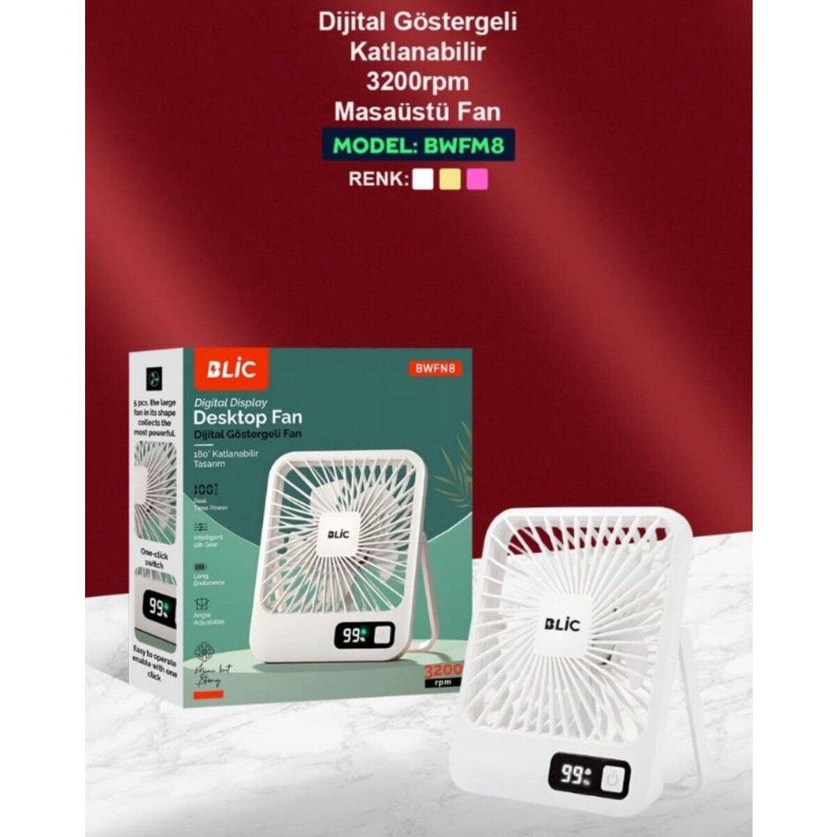 Rose Teknoloji Digital Göstergeli Katlanabilir Taşınabilir 3200RPM 5 Kademeli Masaüstü Soğutucu Fan