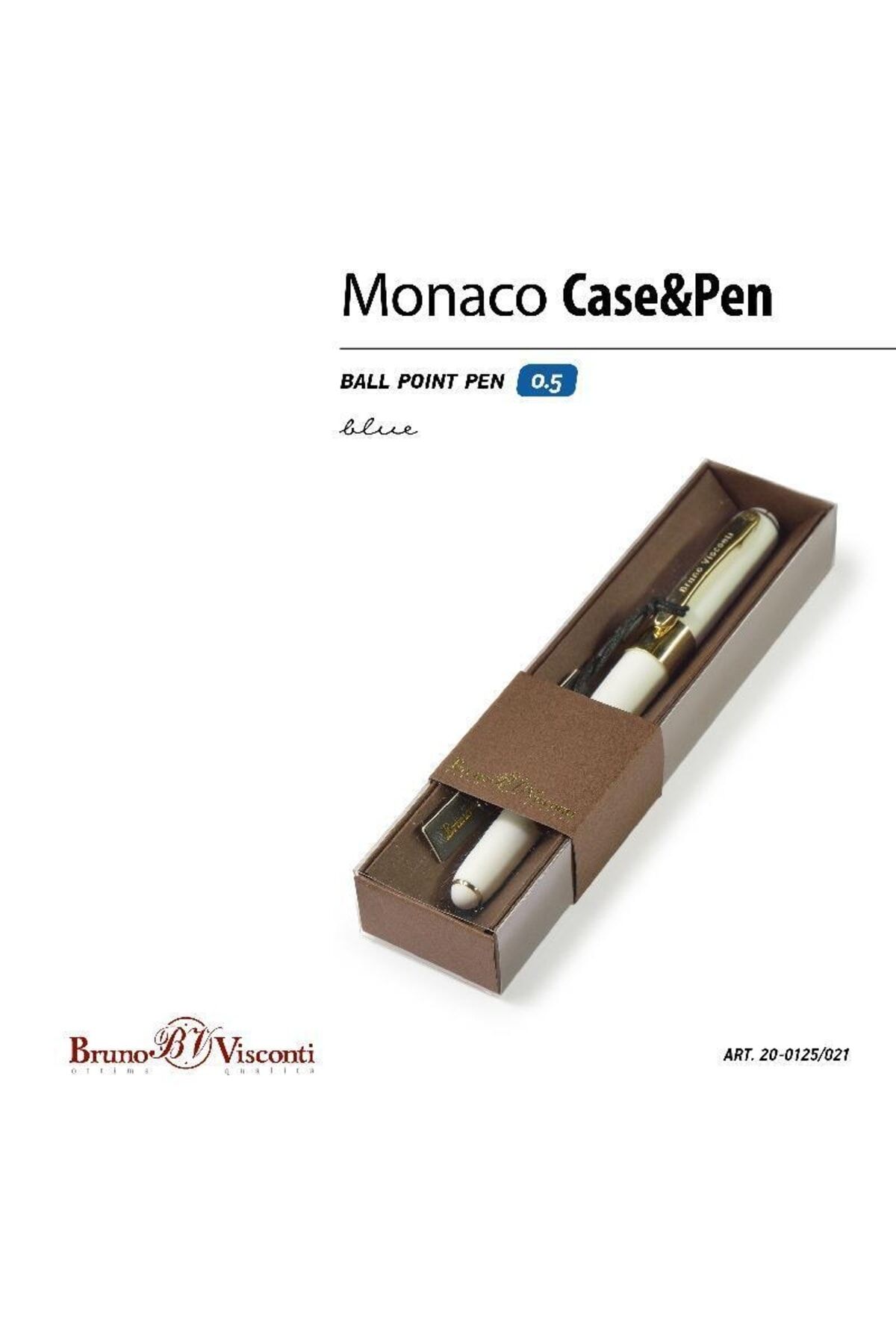 Ballpoınt Pen In Case''monaco'', 0,5 Mm, Blueınk (whıte Body, Brown Case)