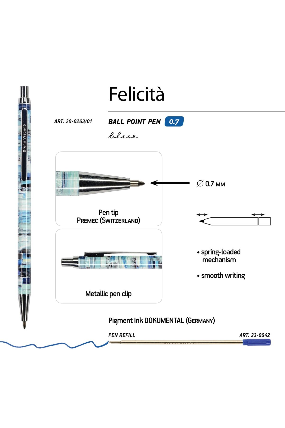 Marka: Bruno Visconti. Mürekkep rengi: Mavi. Mürekkep türü: Alman mürekkebi. Kalem ucu: 0.7mm. Gövde malzemesi: Metal gövde. Kutulu