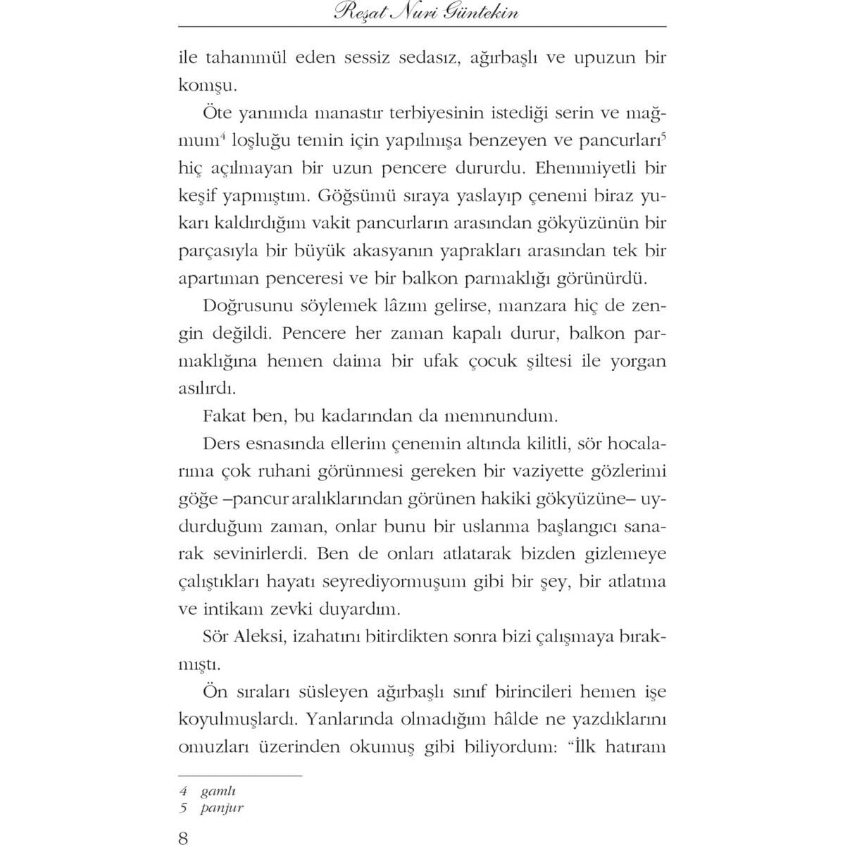 Köy ve kent çatışmasını anlatırken, savaş yıllarının sancılarını da kaleme alan yazar, İstanbullu bir genç kızın maceralarını konu alıyor. Çalıkuşu lakabıyla anılan Feride, Anadolu'nun çeşitli köy ve kasabalarında öğretmen olarak görev alıyor. Roman bu süreci adeta bir serüven gibi okura sunarken, Feride'nin yoluna çıkan zorluklar, aşk ve hayat mücadelesi kitabın ana çatışmasını oluşturuyor. Her yaştan okurun merakla okuduğu ve günümüzde neredeyse her ailenin kütüphanesinde yer alan eser, karakterlerinin duygu dünyasını ele alırken toplumsal ve dönemsel gerçeklikleri de göstererek realizmi ile fark yaratıyor. Yaprak Dökümü, Dudaktan Kalbe gibi eserlere de imza atan Reşat Nuri Güntekin'in pek çok eseri gibi Çalıkuşu da pek çok kez ekrana uyarlandı. Hem edebiyat meraklılarının hem de dizi takipçilerinin rağbet ettiği roman, Türk Edebiyatı'nın klasik eserlerine ilgi duyanlar için yeni bir pencere açıyor. Melodram öğeleri barındıran aşk hikâyesinin yanında kadınların var olma savaşını, bürokratik sistem eleştirisini, köy ile kent çalışmasını ve eğitimin gereğini ele alan eser, yayınlandığı ilk günden bu yana her dönem en popüler edebiyat eserleri arasında yer almayı başarıyor. Yakup Kadri Karaosmanoğlu, Halide Edib Adıvar, Halit Ziya Uşaklıgil, Hüseyin Rahmi Gürpınar ve Mehmet Rauf gibi Türk Edebiyatı'nın önemli yazarlarının kitaplarına ilgi duyan okurların severek okuyacağı Çalıkuşu, tarihi özelliği ile dönem okuması yapmak isteyenlere de uygun bir seçim olacaktır.