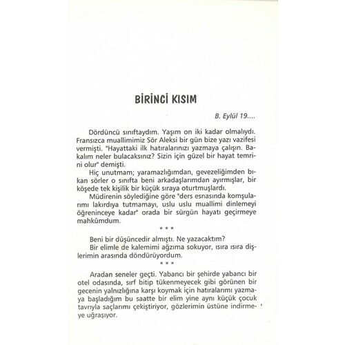Dördüncü sınıftaydım. Yaşım on iki kadar olmalıydı. Fransızca muallimimiz Sör Aleksi bir gün bize yazı vazifesi vermişti. "Hayattaki iki hatıralarınızı yazmaya çalışın. Bukalım neler bulacaksınız? Sizin için güzel bir hayat temrini olur demişti. Hiç unutmam; yaramazlığımdan, gevezeliğimden bıkan sörler o sınıfta beni arkadaşlarımdan ayırmışlar, bir köşede tek kişilik bir küçük sıraya oturtmuşlardı....devamı kitapta.