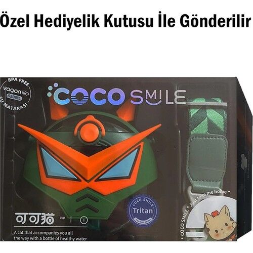 Coco Smile Cocosmile Özel Kutulu 630 ml Pipetli Robot Temalı Tritan Su Matarası -Boyun Askılı Yeşil
