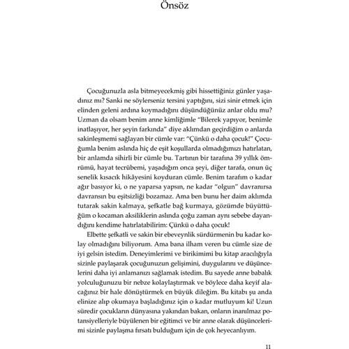Ebeveynler olarak dünyayı değiştirebilir, geleceği şekillendirebilirsiniz. Bunun yolu, çocuğunuzun gelişimini ve duygularını iyi anlamaktan ve onu şefkatle büyütmekten geçiyor. Tartının bir tarafına kendi yaşınızı, hayat tecrübenizi ve yaşadığınız onca şeyi, diğer tarafına da çocuğunuzun birkaç senelik kısacık hikâyesini koyun. Aradaki fark, hayata çocuğunuzun gözünden bakmanızı sağlayarak size yepyeni bir pencere açacak.