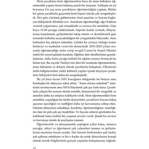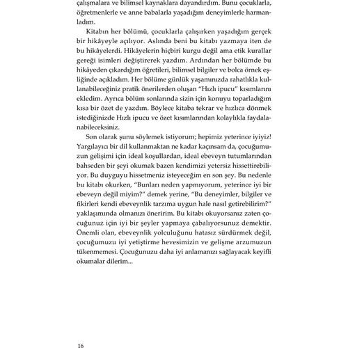Çocuğunu büyütürken pek çok ebeveynle aynı kaygıları yaşayan, aynı süreçlerden geçen uzman eğitimci Senem Han Uysal, ebeveyn-çocuk ilişkisine dair eğlenceli bir bakış açısı sunuyor. Sınır koyma, güvenli bağlanma, çocuğunu gerçek potansiyeline ulaştırma, oyun, beslenme, öfke nöbetleri gibi pek çok konuya gerçekçi bir yaklaşımla öneriler getiriyor. Anne babaların hayatını kolaylaştıracak bilgileri, uzman olarak yaşadığı deneyimler ile güncel bilimsel araştırma sonuçlarını harmanlayarak aktarıyor.