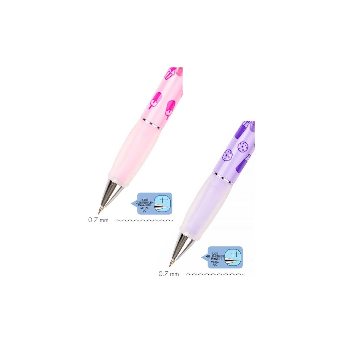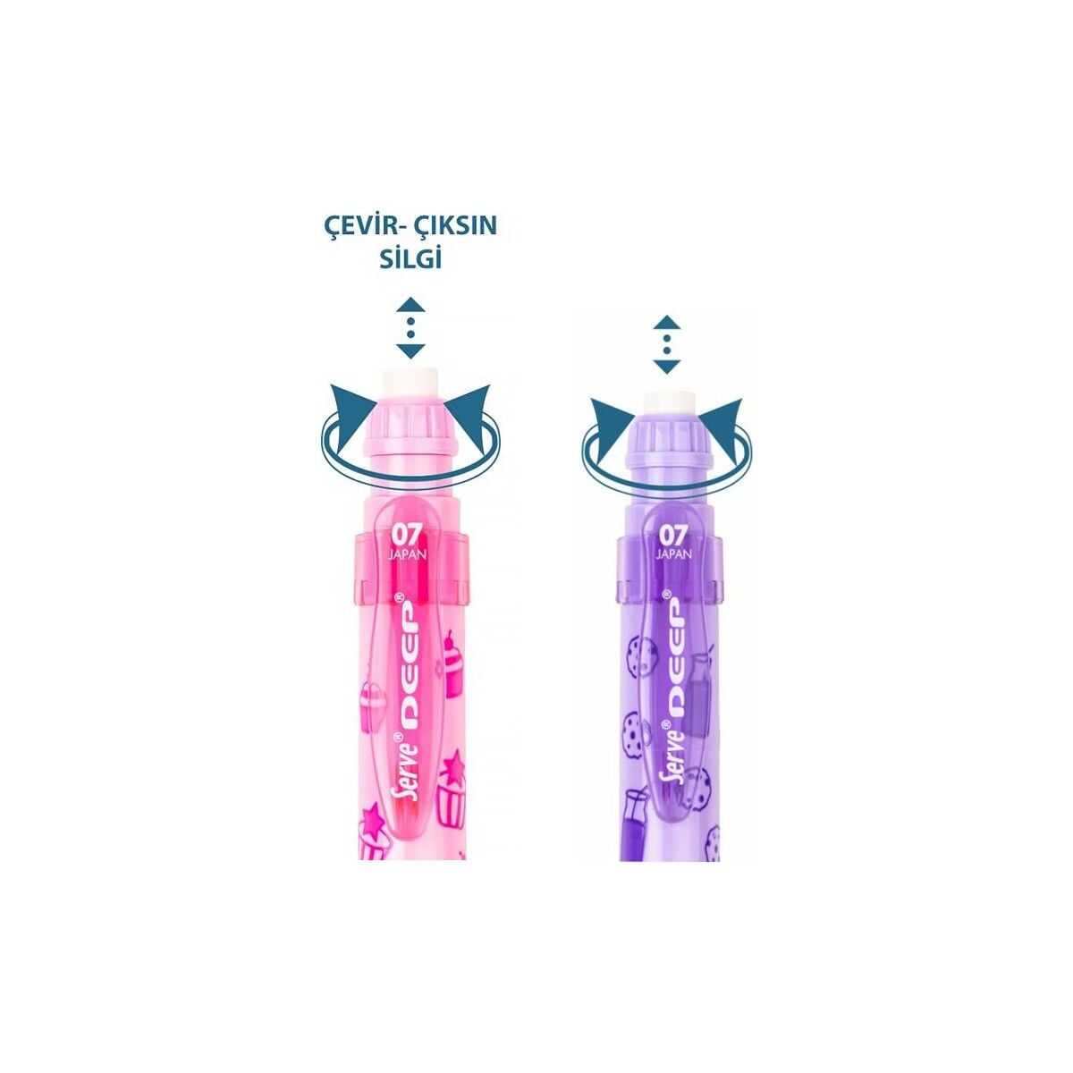 Set içerisinde; Pembe ve Mor olmak üzere toplamda 2 renk Serve Deep Versatil 0.7 Uçlu Kalem bulunmaktadır.