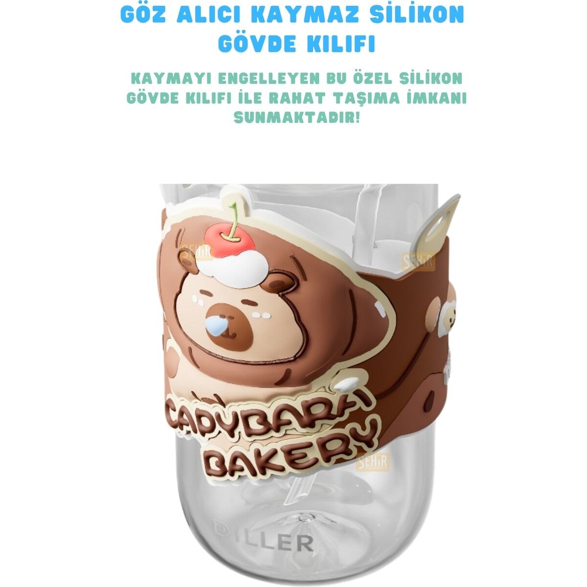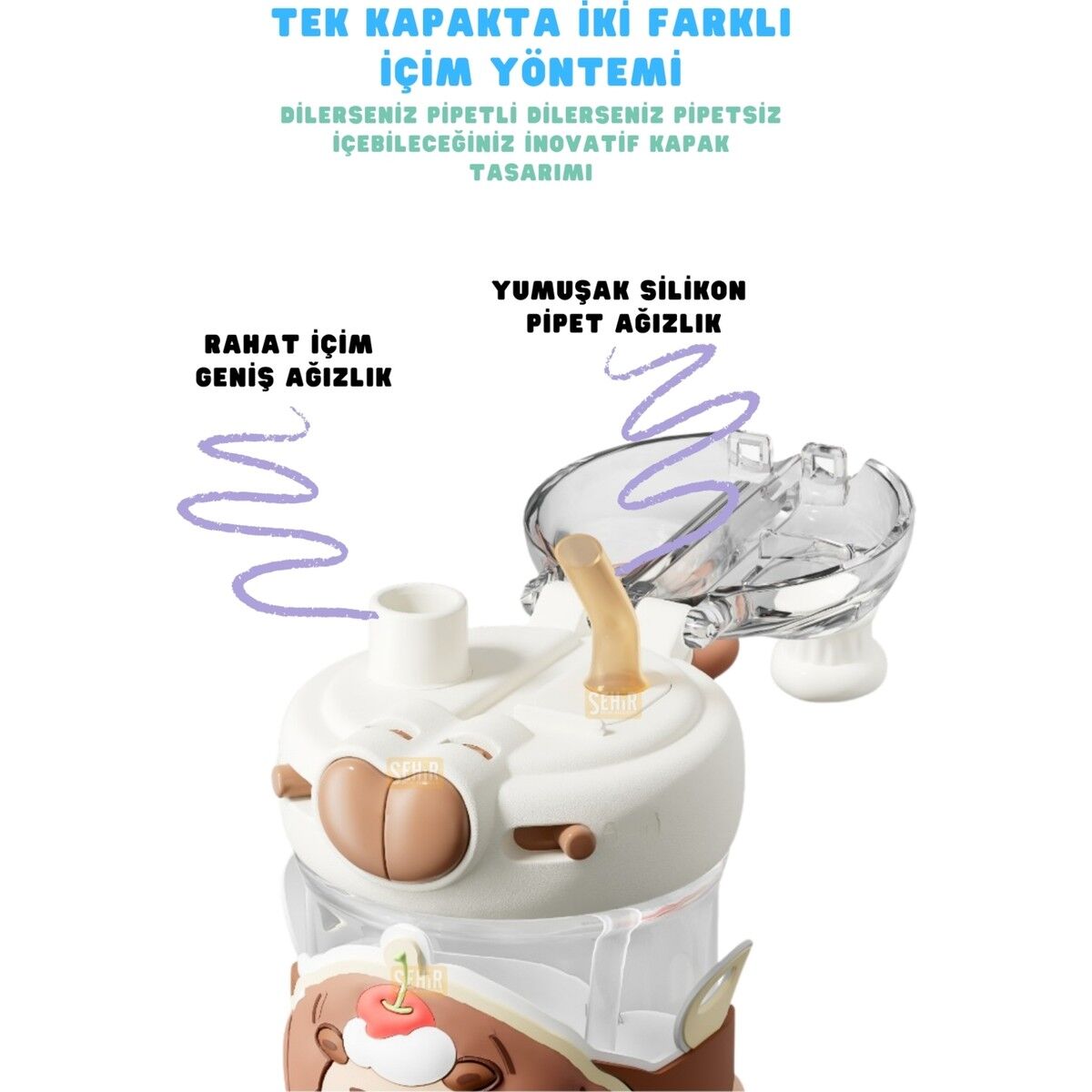 Diller 580ML Yeni Koleksiyon Sevimli Hayvanlar Süslü Pipetli/pipetsiz Boyun Askılı Tritan Çocuk Matarası
