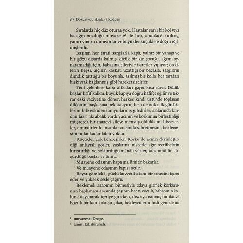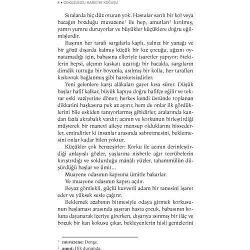 Dokuzuncu Hariciye Koğuşu - Peyami Safa tarafından 1930 yılında kaleme alınmış bir Türk Edebiyatı klasiğidir. Peyami Safa, Dokuzuncu Hariciye Koğuşu'nda okurlara hasta bir insanın gözünden ve iç dünyasından yansımaları sunar. Birçok açıdan Türk Edebiyatı içinde bir ilk ve öncü kabul edilen roman, Ahmet Hamdi Tanpınar'ın anlatımı ile "acının ve ıstırabın yegâne kitabı" olarak tanımlanmıştır. Eserin incelediğiniz baskısı Ötüken Neşriyat tarafından yapılmış ve 2016 yılında raflarda yerini almıştır.