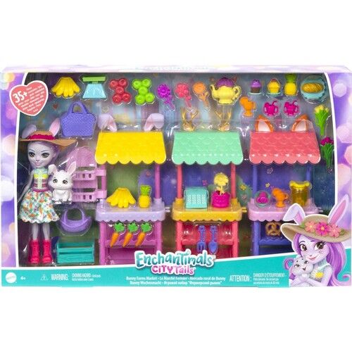 Enchantimals Çiftçi Pazarı Oyun Seti'nde alışveriş yapın! 35'ten fazla parçanın yer aldığı bu oyun setinde Tavşan Becker (15 cm), Tavşan Lop, 3 stant ve çeşitli taze çiftlik ürünleri bulunur. Çocuklar Enchantimals tavşan dostlarıyla ürünleri, çiçekleri ve atıştırmalık stantlarını düzenleyebilir ve sonsuz alışveriş hikayeleri canlandırabilir. Rafları meyvelerle, çiçeklerle, tatlılarla ve daha bir çok ürünle doldurup alışveriş yapın. Yiyecekleri tartıda tartın, kasada ödeme yapın ve sepeti taze lezzetlerle doldurun. Renkler ve süslemeler çeşitlilik gösterebilir.