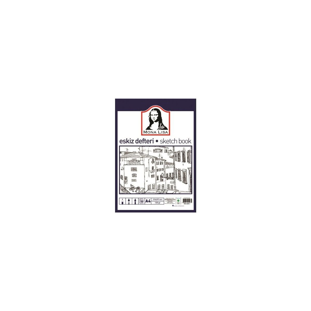 Mona Lisa 50 Yapraklı Beyaz Eskiz Defteri - A4 210x297 mm, 120 gr, Düz Desenli