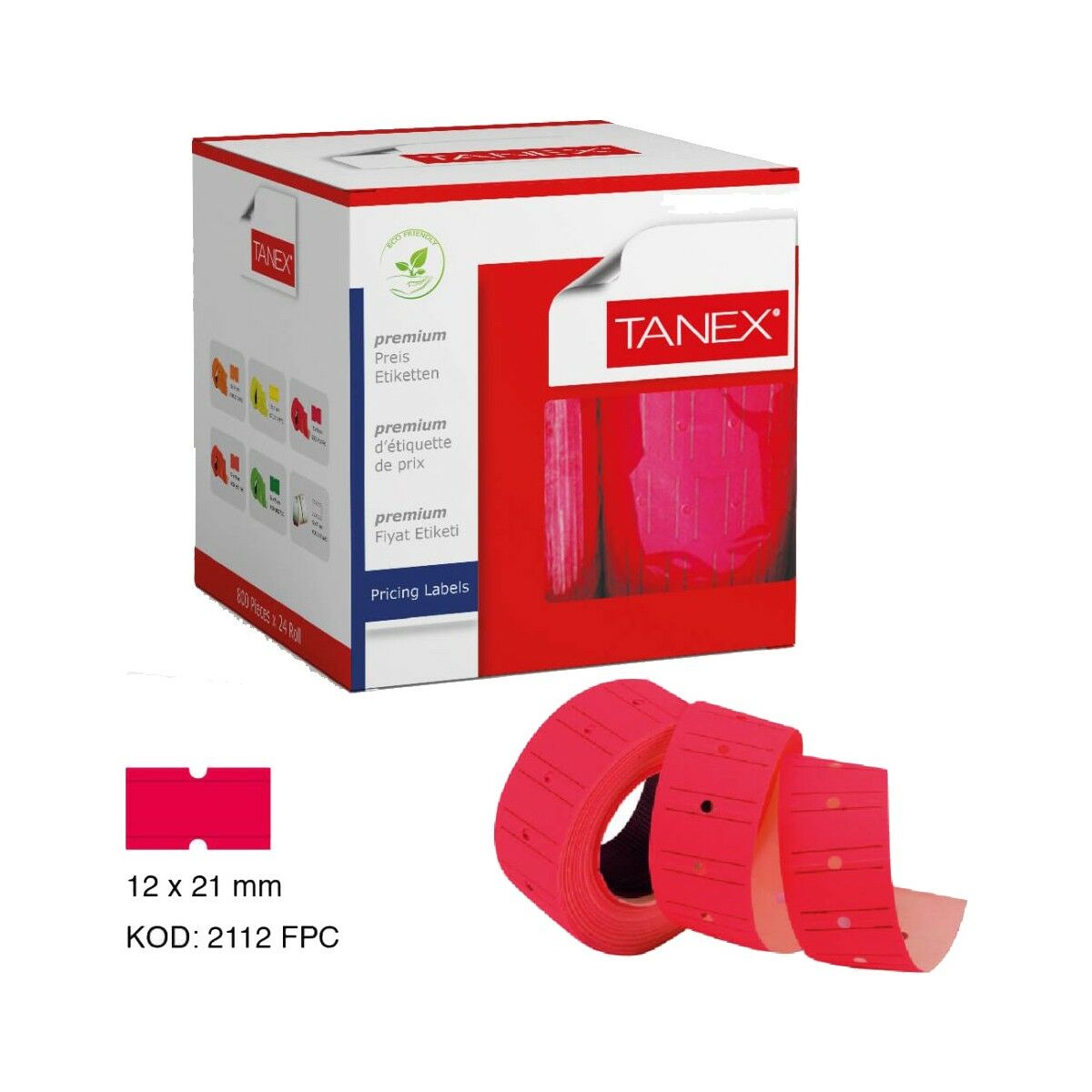 Tanex Fiyat Etiketi Fosforlu Pembe 12x21 mm 800 Lü Rulo 24 Lü Kutu