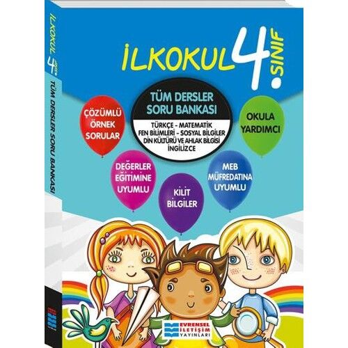 Evrensel 4. Sınıf Tüm Dersler Soru Bankası hem okul derslerinde hem de gelecekte liselere giriş sınavına hazırlık aşamasında öğrencilerin yardımcısı oluyor. Bütün derslere bir arada yer veren kitap ile sınav hazırlığı esnasında birden fazla kitap kullanmaya gerek kalmıyor. Çözümlü sorular da içeren ve 2018 yılında basılmış olan bu kitap sayesinde, hem hata yapılan sorular hakkında detaylı bilgiler alınabiliyor hem de konu tekrarı yapılmış oluyor. 504 sayfa uzunluğuna sahip olan eser, yeni müfredat ile de uyumlu olmasıyla ebeveynlerin ve öğretmenlerin saygısını kazanıyor.