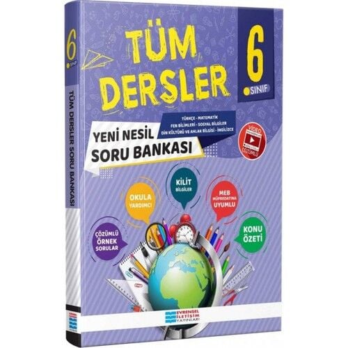 Evrensel İletişim Yayınları 6. Sınıf Tüm Dersler Yeni Nesil Soru Bankası Geri Bildirim Ver Barkod: 9786052110904 Ebatı: 21x27,5 cm Sayfa Sayısı: 580 s. Baskı Yılı: 2020 Kitabın Tanıtımı : MEB’in 6. Sınıf kazanımlarının tümüne yönelik hazırlanmıştır. 6. Sınıf müfredatının bütün branşlarını kapsar. Kitabımızın içeriğindeki testler kolaydan zora doğru, öğretim programına bire bir uyumlu olarak hazırlanmıştır. Sayfa kenarlarında ç özümlü örnek soruların yanında bilgilendirici kilit bilgiler yer alır. Soruların hazırlanmasında değerler eğitimine yer verilmiştir. Öğrencilerin yaparak, yaşayarak, uygulamalı bir şekilde öğrenmesini sağlamak için zengin görsel öğeler kullanılmıştır. Öğrencinin okul derslerindeki başarısını yükselterek ortalamasını artırır ve liseye geçiş sınavında başarılı olmasını sağlar. Soruların tamamı video çözümlüdür. Video çözümleri öğrencilerin konu tekrarı yapmalarını sağlayarak bilgilerini pekiştirir. Soru çözümlerine Evrensel Dijital uygulamasından ulaşılabilir. Uygulamayı PC üzerinden adresinden, akıllı telefondan “evrenseldijital” uygulamasını indirerek kullanabilirler. Akıllı telefonların Android ve IOS platformlarında ücretsiz ve üyelik gerektirmeden kullanabilirler. Akıllı tahtaya uyumludur.