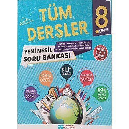 Evrensel 8.Sınıf Tüm Dersler Konu Öz.Soru Bankası(Türkçe-Matematik-Fen Bilimleri-T:C: İnkılap Tarihi ve Atatürkçülük-İngilizce-Din Kültürü ve Ahlak Bilgisi)