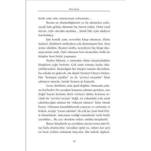 Mine Soysal, yazar ve yayıncı olarak okuyuculara eserler vermektedir. İstanbul Üniversitesi Edebiyat Fakültesi Eski Önasya Dilleri ve Kültürleri Bölümü mezunu olan 1959 doğumlu olan yazarımız, genç edebiyatına birçok eser kazandırmıştır. Bu alanda oldukça deneyimli olan Mine Soysal, Günışığı Kitaplığı'nın yayın yönetmenliği görevini sürdürmektedir. Yazarın eserleri arasında çocuklar ve gençler için bilimsel içerikli kitaplar da yer almaktadır.