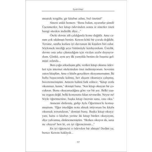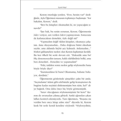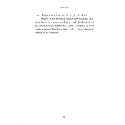 Çocuk ve gençlik edebiyatına önemli eserler vermesiyle tanınan Mine Soysal tarafından kaleme alınan "Eyvah Kitap!", insanların okuma eğilimleri konusuna odaklanıyor. Yazarın bu eğilimler üzerine öğrenciler ile gerçekleştirdiği 40 binden fazla sohbet ışığında oluşturulan eser, çocukların ve gençlerin kitap okuma alışkanlıklarına farklı bir açıdan bakıyor. Deneme türünde yazılan "Eyvah Kitap!", düşündürücü ve hatta komik öyküler ile birlikte konularını işliyor. Bu anlamda kitapseverlerin sıkılmadan okuyacağı zaman zaman güleceği zaman zaman ise düşüneceği içeriğe sahip olan eser, insanların bireysel haklara saygı duymasını, nitelikli seçenekler sunulmasını ve sınırsızca iletişim kurmanın çare olduğuna işaret ediyor. Eyvah Kitap! çocuklara ve gençlere dayatılan "Kitap oku!", "Odana git, kitabını oku!" tabirlerinin çocuklar üzerinde ne kadar olumsuz bir etki yaptığını anlatırken; gençler kadar yetişkinlerin de okumaktan zevk alabileceği bir eser olarak okuyucular ile buluşuyor.