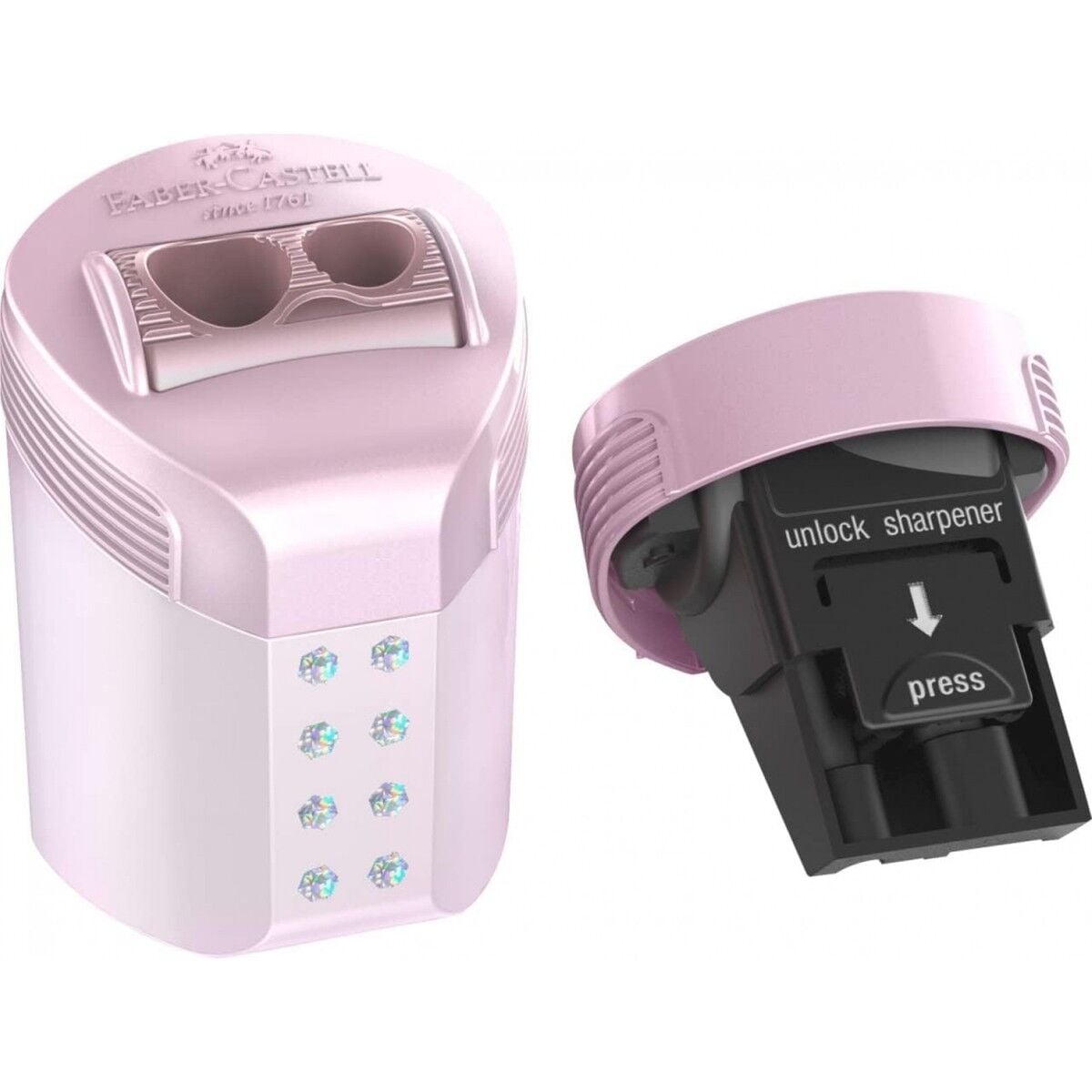 Kolay ve temiz bileme için kaliteli kalemtıraş. Okyanus, Gül ve Mor olmak üzere üç metalik sahada mevcuttur. Rastgele renk seçimi. Grafit ve renkli kalemler için uygundur. Tüm yaygın kalem şekilleri için: Standart ve Jumbo.