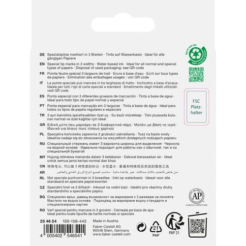 › Su bazlı mürekkep › Dayanıklı kesik uç › 3 farklı genişlikte çizim olanağı (5, 2, 1 mm) › Yatay olarak saklayın