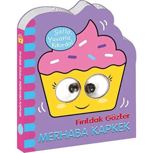 Fırıldak Gözler MERHABA KAPKE Merhaba, ben bir Kapkek’ im Evim, pastanedir benim, İnsanları gülümsetmeyi severim. Vitrindeki en tatlı hediyeyim! Salla Yuvarla. Kıkırda! Fırıldak gözleri salla, yuvarla ve afacan Kapkek ‘in Tatlı hikayesini oku!