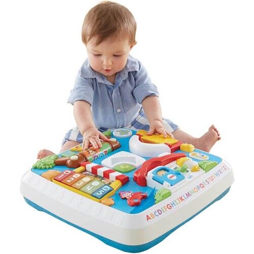 Eğlen ve Öğren Eğitici Köpekçiğin Aktivite Masası ile çocuklar çok keyifli vakit geçirecek! Bebeğiniz bu aktivite masasında 120'den fazla şarkı, melodi ve cümleyle 4 eğlenceli mekanı ; ev, pazar, çiftlik ve hayvanat bahçesini ziyaret ediyor. Bebek, bu öğrenme masasının her köşesinde keşfedecek yeni bir yer ve telefon, çıngıraklar, çemberler, düğmeler ve açıp kapanabilen kapılar olmak üzere birçok aktivite bulacak. Hayvanat bahçesine gidin ve silindiri döndürüp hayvanlar hakkında şarkılar dinleyin veya İngilizce ve Türkçe dillerinde şekilleri öğrenmek için düğmelere basın. Çiftliğe bir gezi düzenleyin ve çiftlikteki dostların selamlaması için ahır kapısını açıp kapayın. Piyano çalmak ve sayıları, yemekleri ve renkleri öğrenmek için tuşlara basın. Şimdi Köpekçik’in evine gidelim. Köpekçik’in alfabeyi sayışını dinlemek için evin kapısını açıp kapayın. Zıt anlamlıları öğrenmek için ise ışığı açın. Bebeğiniz oturarak oynamaktan ayağa kalkıp dolaşmaya hazır olduğunda masanın bacakları ekleyin. Ayrıca; öğretilen içerik bebeğiniz büyüdükçe bebeğinizin gelişimine uygun olarak değişir. Yaşa Göre Gelişim Teknolojisi; 1. Seviye - Keşfetme İlk sözcükler ve sesler, bebeğinizde merak uyandırır. 2. Seviye - Teşvik etme. Bebeğinizi, sorular ve basit talimatlar ile oyuna teşvik eder. 3. Seviye - Taklit etme. Bebeğinizin hayal gücünü geliştirir ve onu eğlendirir. Bebeğiniz taklit oyunları ile öğrenir. Bebeklerin; interaktif öğrenme ve rol yapma yeteneğini, tutma-kavrama becerilerini, İnce motor becerilerini ve hayal güçlerinin gelişmesine yardımcı olur. İngilizce ve Türkçe dil seçeneği mevcuttur. 3 x 1,5V AA pil ile çalışır. Piller kutuya dahildir. Kutu ölçüsü: 55,8 x 13,8 x 40,5 cm Ağırlık: 2,761 kg