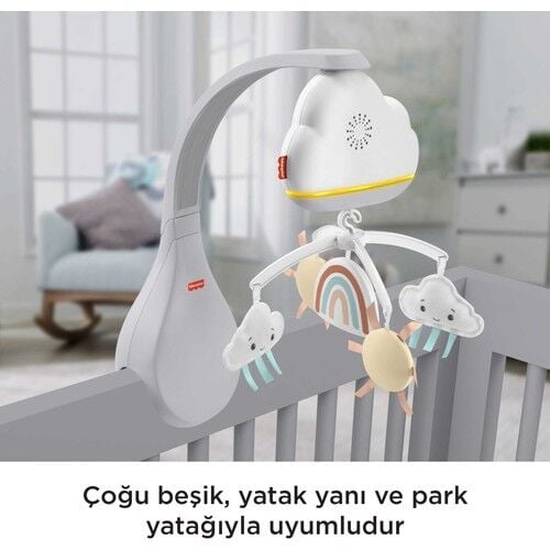 •Bebek büyüdükçe, beşikten masa üzerinde kullanılan ses makinesi ve gece lambasına geçiş yapan motorlu dönence.