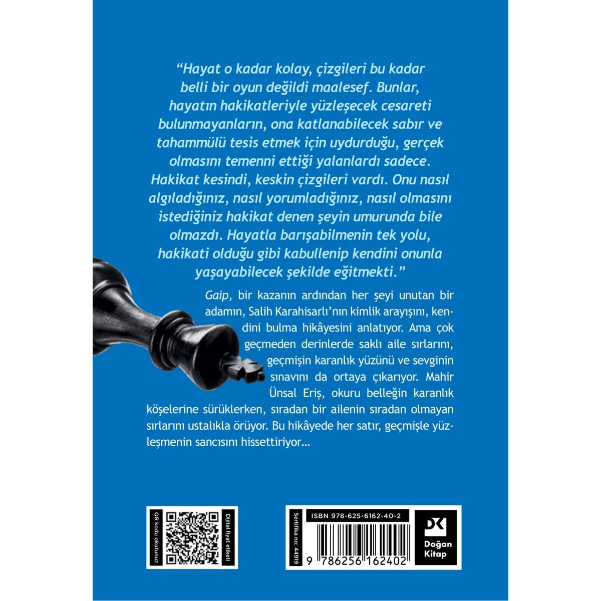 “Hayat O Kadar Kolay, Çizgileri Bu Kadar Belli Bir Oyun Değildi Maalesef. Bunlar, Hayatın Hakikatleriyle Yüzleşecek Cesareti Bulunmayanların, Ona Katlanabilecek Sabır Ve Tahammülü Tesis Etmek İçin Uydurduğu, Gerçek Olmasını Temenni Ettiği Yalanlardı Sadece. Hakikat Kesindi, Keskin Çizgileri Vardı. Onu Nasıl Algıladığınız, Nasıl Yorumladığınız, Nasıl Olmasını İstediğiniz Hakikat Denen Şeyin Umurunda Bile Olmazdı. Hayatla Barışabilmenin Tek Yolu, Hakikati Olduğu Gibi Kabullenip Kendini Onunla Yaşayabilecek Şekilde Eğitmekti.” Gaip, Bir Kazanın Ardından Her Şeyi Unutan Bir Adamın, Salih Karahisarlı’nın Kimlik Arayışını, Kendini Bulma Hikâyesini Anlatıyor. Ama Çok Geçmeden Derinlerde Saklı Aile Sırlarını, Geçmişin Karanlık Yüzünü Ve Sevginin Sınavını Da Ortaya Çıkarıyor. Mahir Ünsal Eriş, Okuru Belleğin Karanlık Köşelerine Sürüklerken, Sıradan Bir Ailenin Sıradan Olmayan Sırlarını Ustalıkla Örüyor. Bu Hikâyede Her Satır, Geçmişle Yüzleşmenin Sancısını Hissettiriyor…