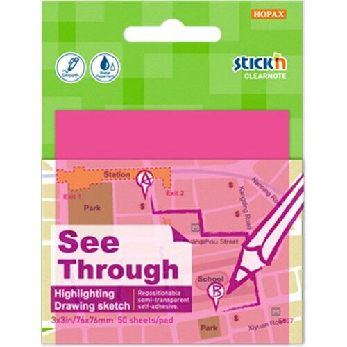 Hopax Stickn Yapiskanli Not Kagidi 76X76 Mm Saydam Pembe 50 Yaprak 4-2171100-5001