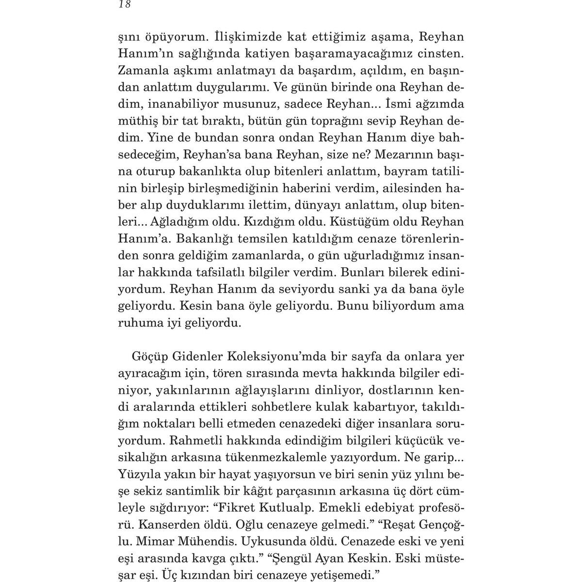 Hayat ne biriktirir bizim için?nKırık dökük aşklar, yaşanmamışlıklar, olmamışlıklar, bir çocukluk anısına teğellenmiş hüzünler, aşkın sonsuz bekleyişleri, ayrılıklar, kentler, köyler, yollar, rüzgârlar, gündoğumları, biraz keder, biraz da neşeyle çatılmış evler… Hayat bizim için saklamaya hazır olduklarımızı, bize yakışanları, ihtiyacımız olanları ve bizi büyütecekleri, bizi biz edecekleri biriktirir…nnGöçüp Gidenler Koleksiyoncusu gidenler için bir ağıt, kalanlar içinse bir şiir, biriktirilmiş insan öyküleri…nnŞermin Yaşar, Göçüp Gidenler Koleksiyoncusu’nda o çok özlediğimiz “insan”a bütün görkemiyle geri döndürüyor bizi. Hazırlayın yüzünüzü. Gülüşünüzün yanına biraz da keder koyun, okurken biraz ondan alacaksınız, biraz bundan. Kıtlama çay içer gibi...nnYazar Hakkında:n1982 Berlin doğumlu olan Şermin Yaşar, Türk Dili ve Edebiyatı mezunudur. Yüksek lisansını yine edebiyat alanında yapmıştır. Uzun yıllar reklam ve medya sektöründe metin yazarlığı, reklam yazarlığı, kreatif direktörlük yapmış ve mesleğine devam ederken bir yandan da Oyuncu Anne isimli sosyal medya hesapları üzerinden çocuklarıyla oynadığı yaratıcı ve gelişimlerini destekleyici oyunları paylaşarak ülkenin dört bir yanındaki annelerle arkadaşlık ağ› kurmuştur. Başlarım Şimdi Anneliğe, Oyuncu Anne, Çok Hayal Kuran Çocuk, Oyun Takvimi, Kötü Alışkanlıklara İyi Öneriler, Dedemin Bakkalı, Dedemin Bakkalı Çırak, Tilki Masalları ve Tarihi Hoşça Kal Lokantası isimli kitapların yazarı olan Şermin Yaşar 3 çocuk annesidir.
