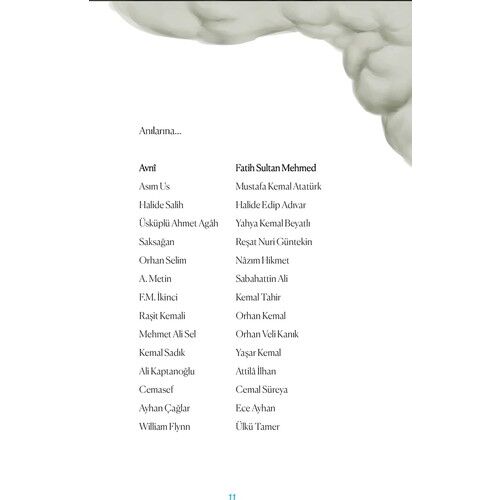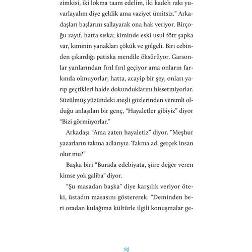 Fatih Sultan Mehmed, Mustafa Kemal Atatürk, Halide Edip Adıvar, Reşat Nuri Güntekin, Nâzım Hikmet, Yahya Kemal, Sabahattin Ali, Orhan Kemal, Yaşar Kemal, Kemal Tahir, Orhan Veli, Ülkü Tamer, Ece Ayhan, Cemal Süreya ve Attilâ İlhan'ın gölgeleri...