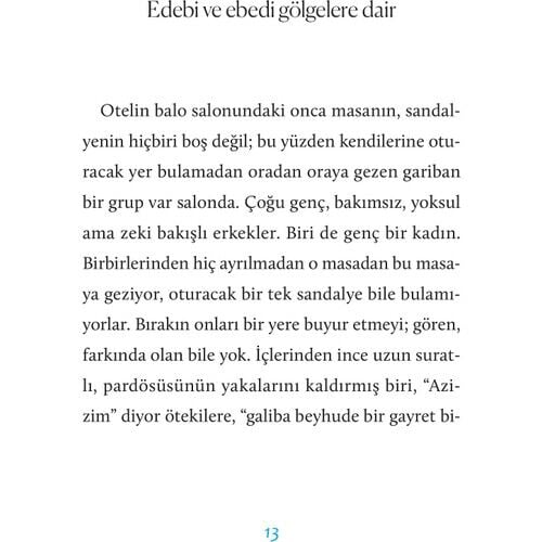 Karanlığın bütün gölgeleri yuttuğu bir İstanbul akşamı. Bütün sesler susmuş. Yalnızca gelip geçenlerin görmediği, duymadığı Gölgeler’in sesleri yankılanıyor sokaklarda. Son bir kez söylenen şarkı gibi, son bir kez yazılan şiir gibi, “son bakışta aşk”ta dile gelen sevda sözleri gibi… Gölgeler konuşuyorlar karanlıkta…