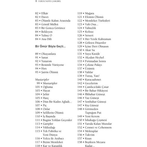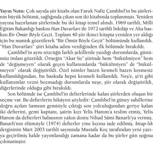Yağız atlar kişnedi, meşin kırbaç şakladı, Bir dakika araba yerinde durakladı. Gözlerimin önünden geçti kervansaraylar... dizelerinin ünlü şairi Faruk Nafiz Çamlıbel'den Gurbet ve Saire... Hatta bana insanlara nispetle yakındır Bahçemde ölen kuş diyen Faruk Nafiz'in şiirlerini bir araya getiren Gurbet ve Saire'de Han Duvarları ve Bir Ömür Böyle Geçti kitaplarına yer verildi. Ayrıca şairin ölümünden sonra saklı kalan defterlerinden yapılan bir seçme de ilk kez bir kitapta okurla buluştu.
