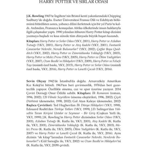 - Dursley''ler o yaz öylesine çekilmez olmuşlardır ki, Harry bir an önce okulu Hogwarts''a geri dönmek için can atmaktadır. Eşyalarını toplarken ortaya çıkan ev cini Dobby ise onu uyarır: Hogwarts''a dönerse, bir felaket olacaktır. Olur da: Sırlar Odası''nın açılmasıyla ortaya çıkan karanlık bir güç, Hogwarts''takileri taşa çevirmeye başlar. Harry, hayatını tehlikeye atarak, Oda''nın elli yıllık ölümcül gizemini çözmeye çalışıyor. Ve gerçekten de başına gelmedik felaket kalmaz. Harry Potter''ın okuldaki ikinci yılını anlatan Harry Potter ve Sırlar Odası''nda J.K. Rowling bildik öğrenci sorunlarını -kıskançlıklar, rekabetler, çekingenlikler- yer yer ürkütücü, yer yer komik düşsel öğelerle ustaca iç içe geçiriyor.
