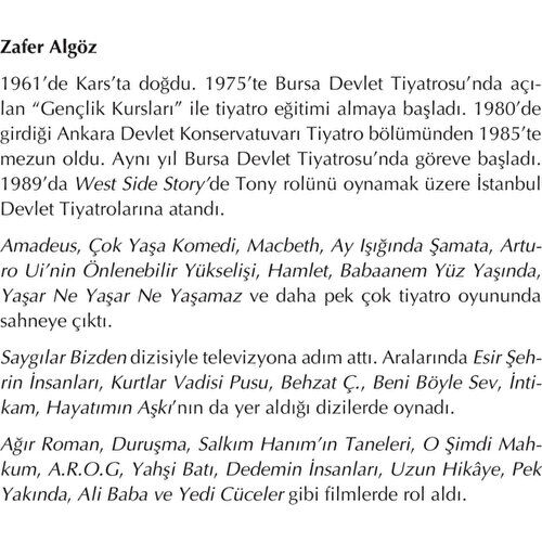 Zafer Algöz, 1961 Kars doğumlu başarılı bir oyuncudur. Oyunculuk hayatına devlet tiyatrolarında rol alarak başlar. İlerleyen dönemlerde dizi ve filmlerde kendini gösterir. Usta oyunculuk yeteneği ile kısa sürede tanınır ve sevilen oyuncular arasında yer alır. Oyunculuk hayatı boyunca pek çok ödüle layık görülür. Haşırt Dı Bilekbord kitabı ile edebiyat dünyasına yankılı bir giriş yapar. Oldukça başarılı bulunan bu kitap sayesinde yazarlığa da soyunan Zafer Algöz, şimdiden en sevilen mizah yazarları arasında yer almaya başlamıştır.