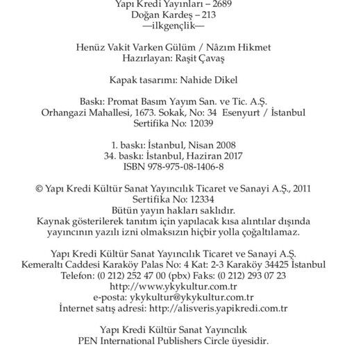 Henüz Vakit Varken Gülüm - Seçme Şiirler - Nazım Hikmet Ran Henüz Vakit Varken Gülüm – Seçme Şiirler - Nazım Hikmet