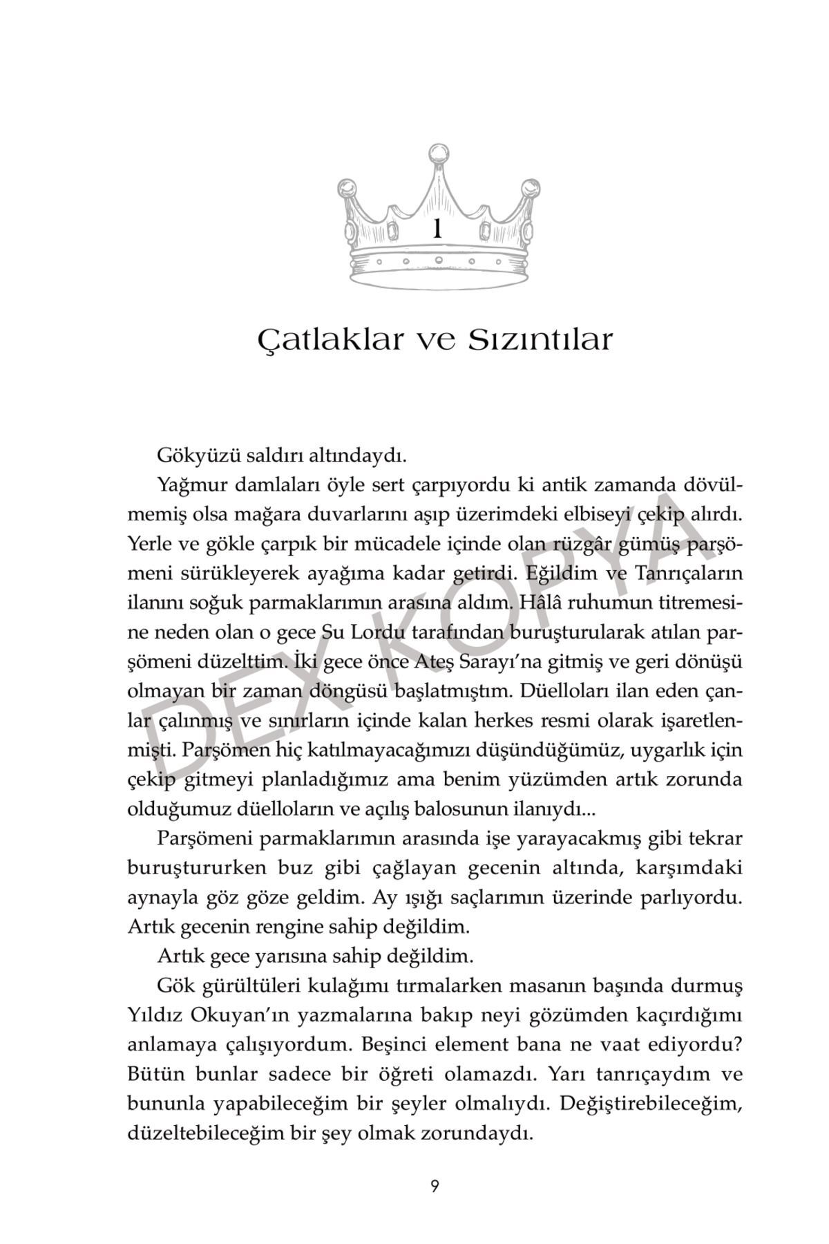 KUTU İÇERİĞİ Ciltli kitap 3 Adet Şömiz Ayraç 1 Adet Karakter Kartı 1 Adet Poster Hazinesi ol okyanusun! Tanrıçalar, düelloları hepsinin sonunu getirecek bir oyuna çevirdiğinde, kılıçların yanı sıra aklın ve iradenin çarpıştığı bir ölüm dansı başlar.; Sınırların ötesinden gelenler, lordları ve vârisleri yerinden etmek için kan dökmeye hazır.; Su Krallığı kayıp uygarlığı ve tahtını geri istiyor.; Nova kapıyı açmak istiyorsa zor bir seçim yapmalı.; Ateş Krallığı harlanırken Hava Krallığı’ndan gelen beklenmedik haber mücadelenin seyrini değiştirir.; İsyan etmek için an kollayan Toprak Krallığı boyun eğmemekte kararlı.; Arenada, suların altında, aklında ve kalbinde herkesi kurtarmaya çalışan Nova, ilk ve son savaşı için tüm gücünü kullanmak ve kim olduğunu kabul etmek zorunda.