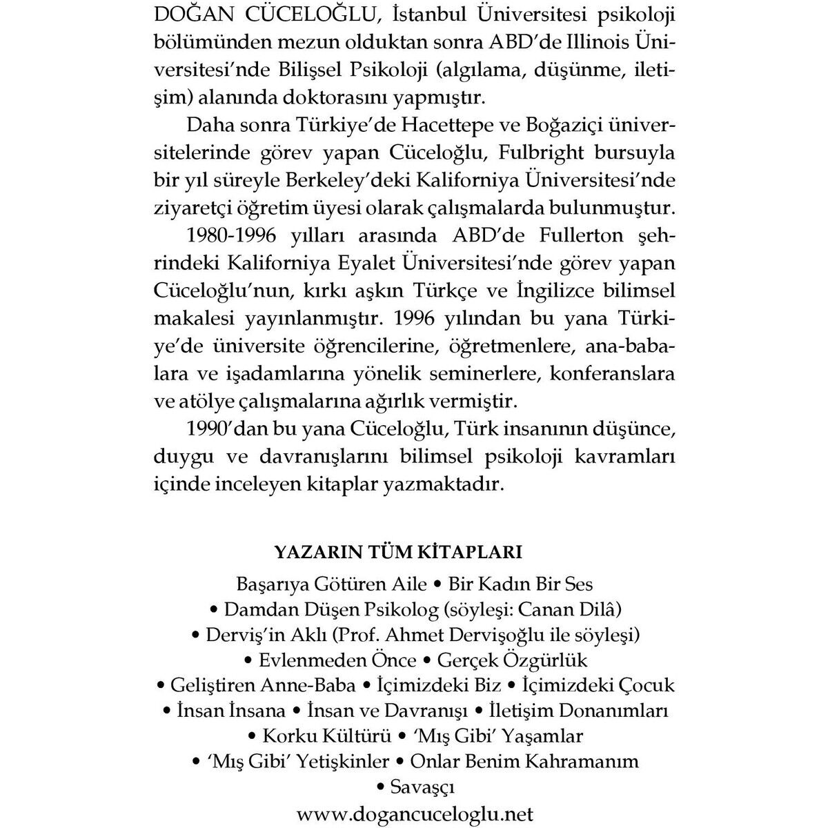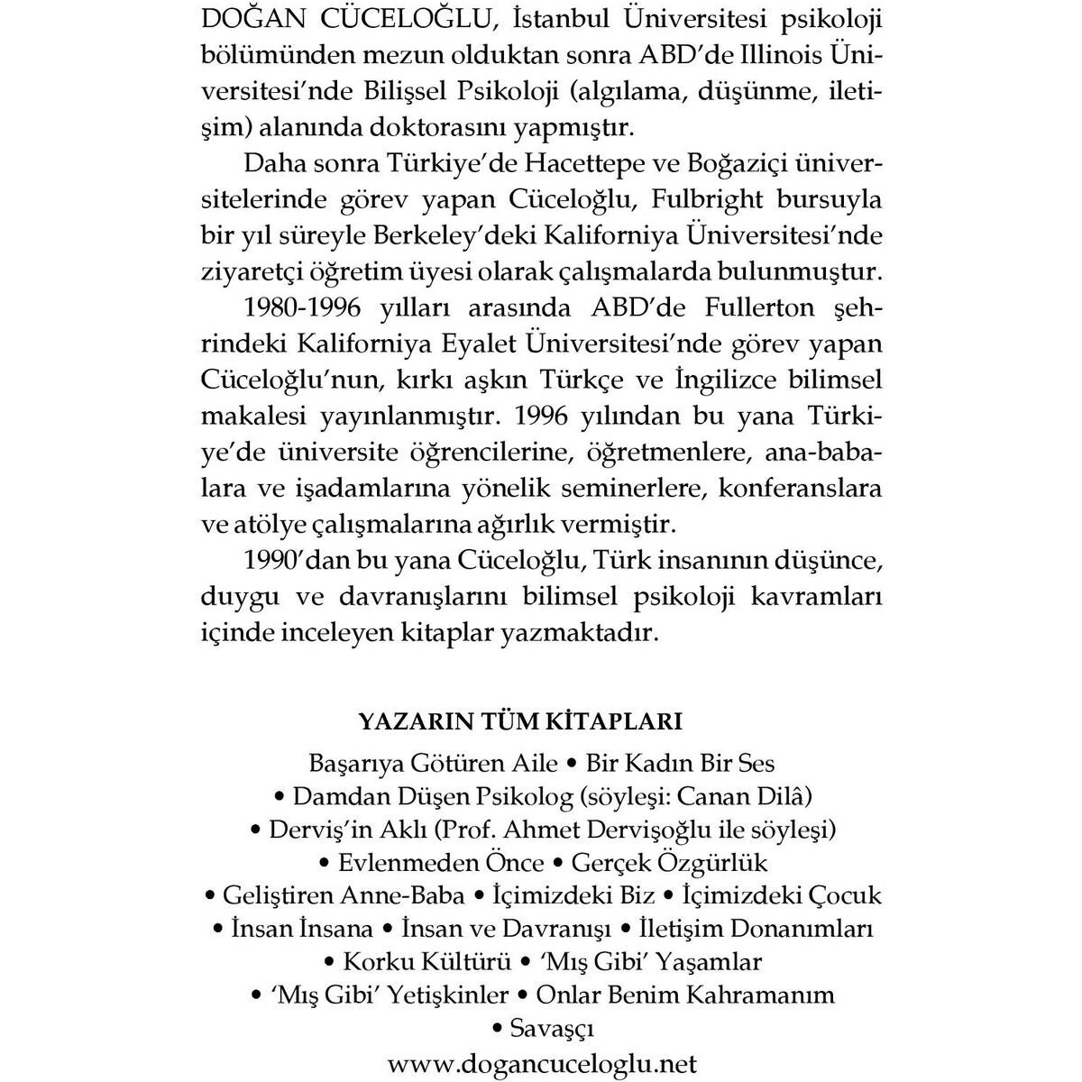 Doğan Cüceloğlu, İstanbul Üniversitesi Psikoloji Bölümünden mezun olduktan sonra "bilişsel psikoloji" alanında doktorasını yapıyor ve 1990 yılından bu yana psikoloji ile ilgili önemli kitaplar yazarak, alanın gelişimine önemli katkılar sağlıyor. Yazar; seminer, konferans ve atölye çalışmaları ile bu alandaki çalışmalarına devam ediyor.