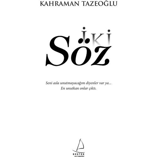 Türk Edebiyatı'nda aşkı işleyen en önemli yazarlardan biri olan Kahraman Tazeoğlu bu kez aşkı acı gerçekleri ile ele alıyor. Okurken herkesin kendinden bir parça bulabileceği eser, aşkın hayattaki yerini anlatırken yalnızlık vurgusu ile insanın kendi benliğini de kaybetmemesi gerektiğini sık sık hatırlatıyor. Türkiye'nin en çok satan yazarlarından biri olan Tazeoğlu'nun hislere tercüman olan yeni eseri Destek Yayınları etiketi ile raflardaki yerini aldı. Evrensel bir konuyu işlediği için her yaş grubundan insanın ilgisini çeken İki Söz, alışılmış aşk temasının dışına çıkarak insanın aşkta kaybettiği değerlerini, başka bir insan için girilen değişim sürecini ve yaşanılan hüsranı okuyucuya aktararak beklenen mutlu son kavramından uzakta, gerçeğe dokunan bir çizgi taşıyor. Yazarın 2010 yılında kaleme aldığı Eyvallah kitabını sevenlerin benzer tadı bulacağı eser insanlık tarihinin en eski kavramlarından olan sevgi ve aldanışı vurucu cümleler ile işliyor. Ana karakterin aşk ve yalnızlık arasında geçirdiği macerayı ve bu tecrübenin birikimini okuyucuya aktaran yazar, edebiyatseverlerin hislerine tercüman oluyor.